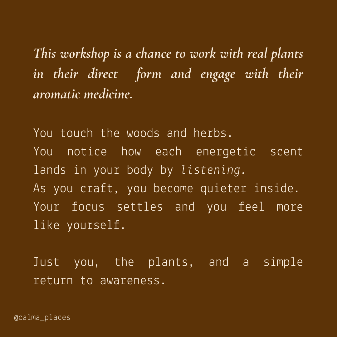 This hands on incense making workshop is available for private bookings and small group gatherings.