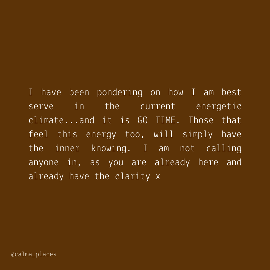 I have been listening closely to the current energetic climate and how I am meant to serve within it. The message was clear. It is time. Those who recognise this frequency will not need convincing. You already know.