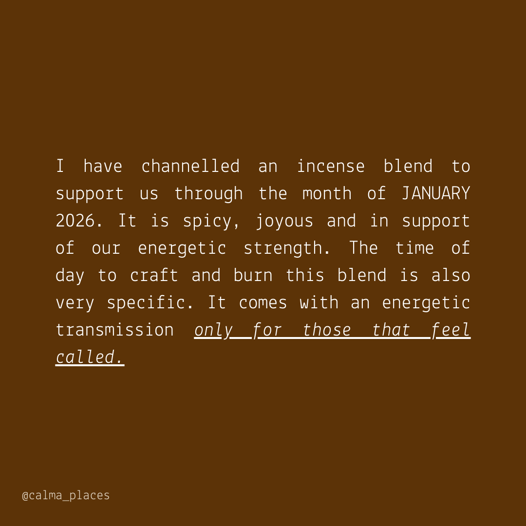 It is spicy, luminous, and crafted to strengthen the inner fire. This is a blend for clarity, joy, and forward movement. There is a very specific rhythm to when this incense is crafted and when it is burned. That timing is part of the transmission.